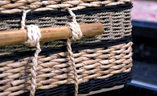 De Benno is de zwarte variant uit de bananencasket-reeks, gemaakt van bananenbladeren, wilde ananas (pandanus) en pitriet. De rechte vorm en licht gebogen deksel bepalen het uiterlijk. De mand heeft doorlopende handgrepen, vaste binnenbekleding, geen metaal en is Fair-Trade. Deze mand is breder dan de andere manden met een binnenmaat van bijna 68 cm.
