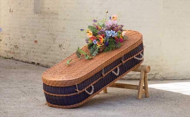 Uitvaartmanden van natuurlijke materialen zoals wilgenteen, pandanus en bananenblad. Geschikt voor natuurbegraafplaatsen, crematie en reguliere begrafenissen.